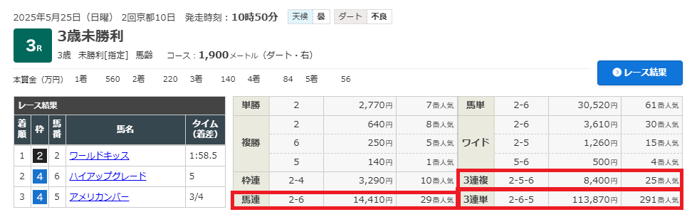 今回は京都3Rの馬連・3連複・3連単の3つ!