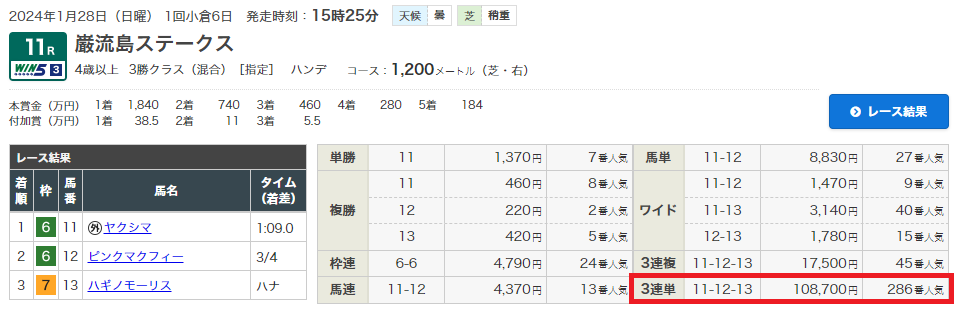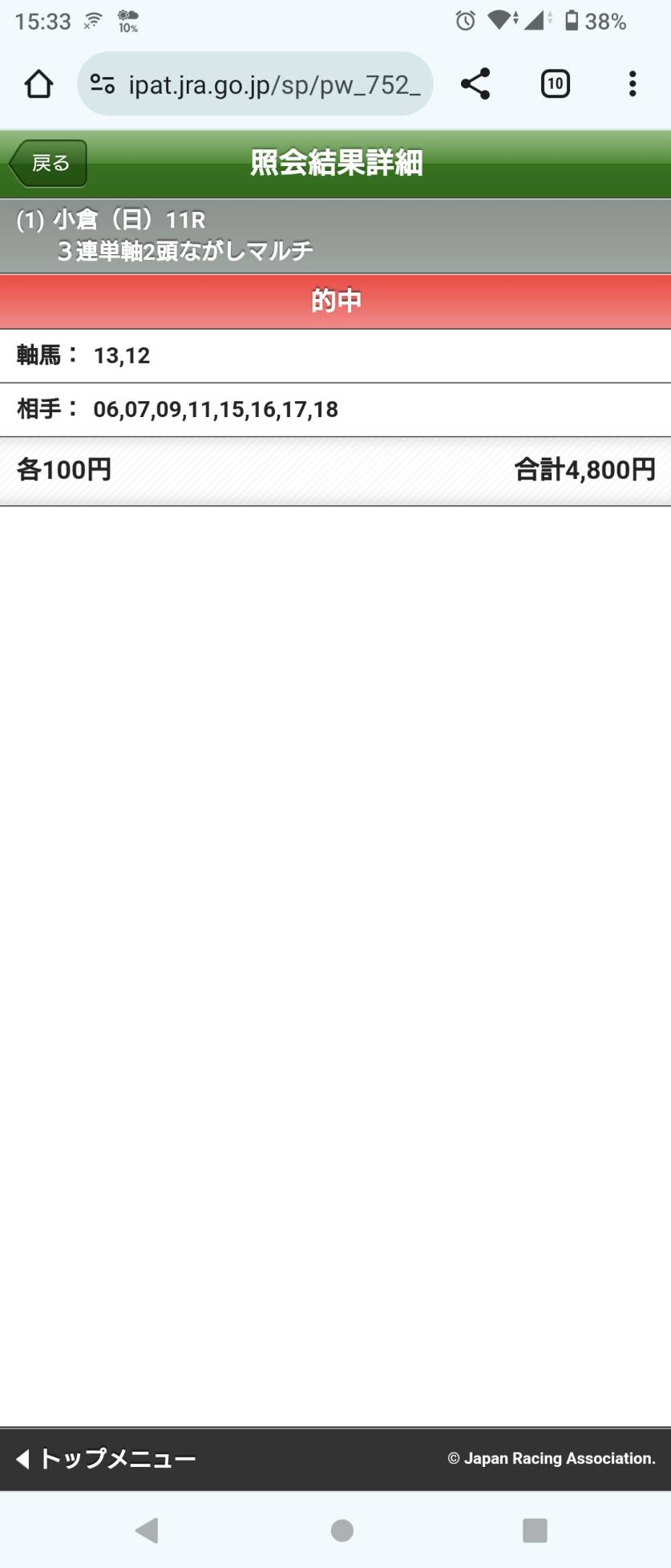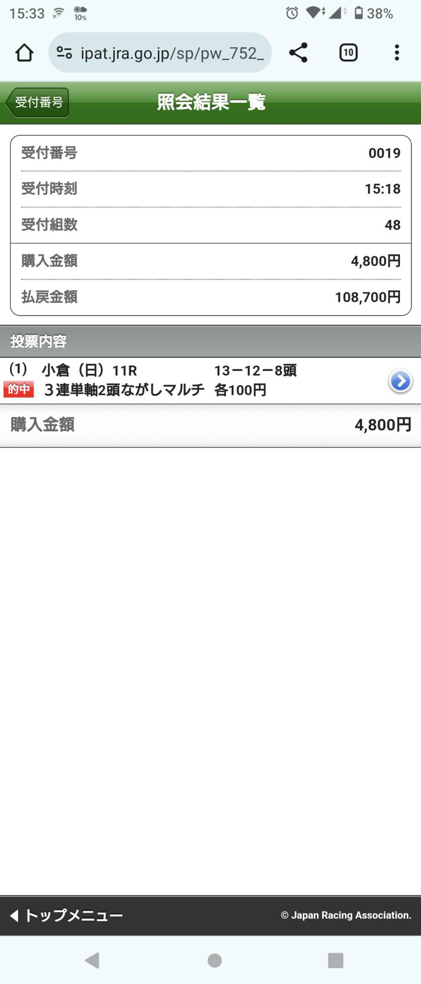 28日(日)小倉11Rで「10万馬券的中」7万9600円獲得!