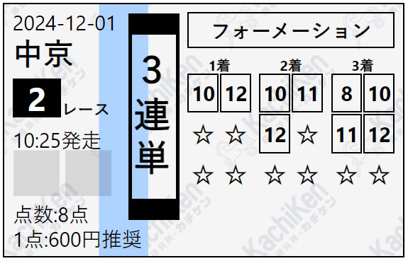 12月1日(日)に公開されていた買い目がこちらになります。