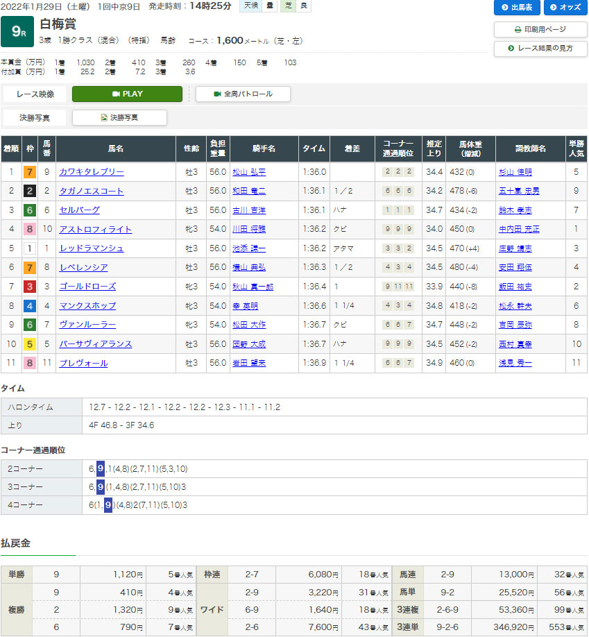 デビュー戦で強烈なインパクトを残して勝利した、グレナディアガーズの弟アストロフィライトが参戦し、クラシックに向けて注目度の高い白梅賞の情報である。
