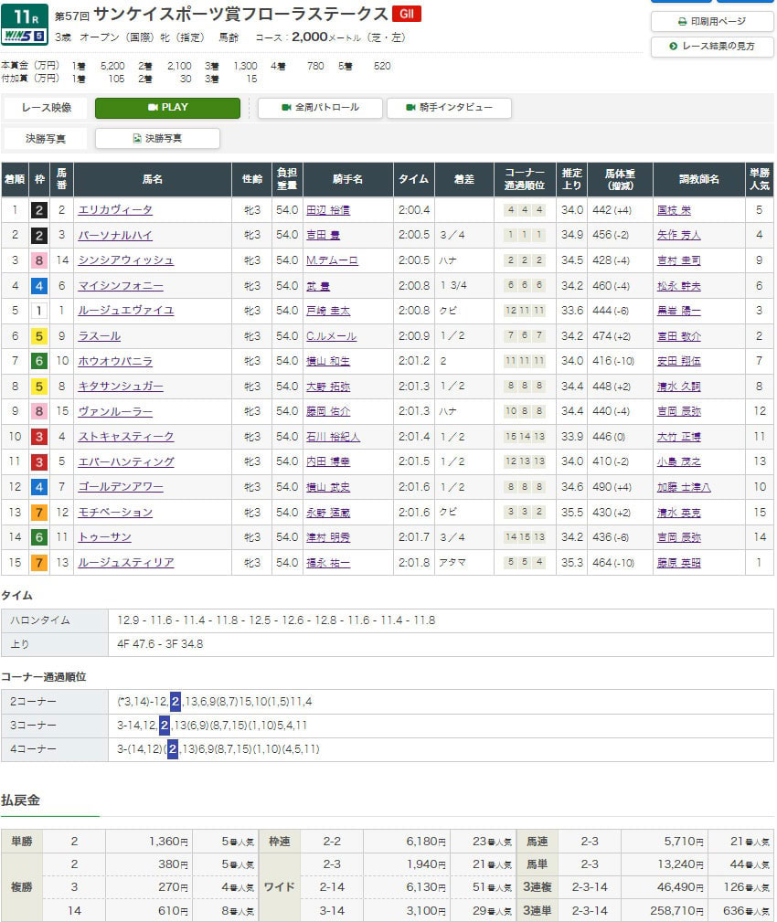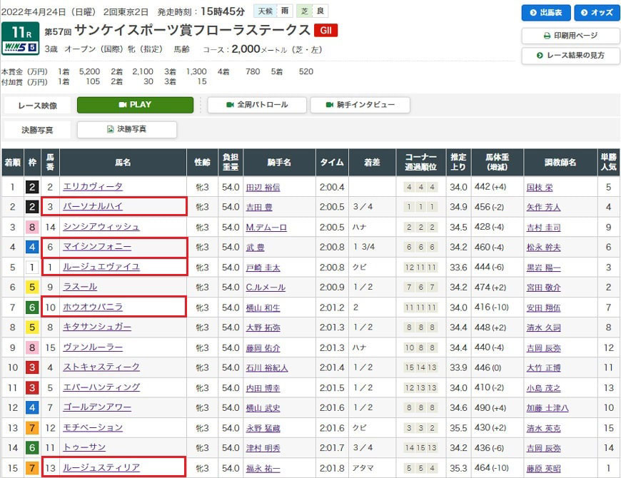 【検証レース:4/24 東京11R G2 フローラステークス】