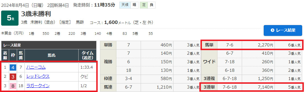 まずは8月3日(土)に公開された買い目から見ていきたいと思います。