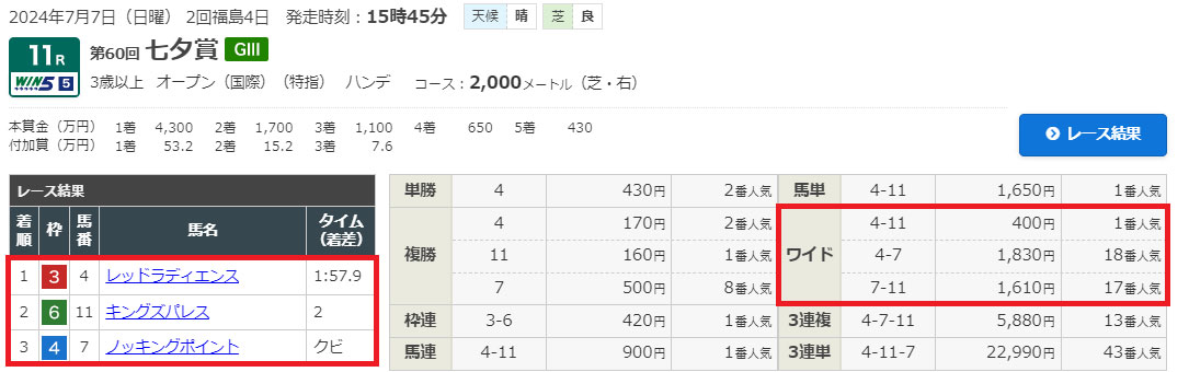 七夕賞で上位人気だけで決まったら誰も予想に苦労しないですよね…(笑)