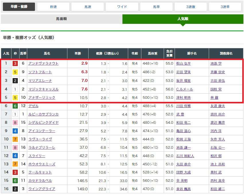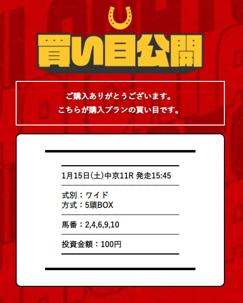 穴党予想という事で無料情報でも穴馬を取り上げていると思ったが1番人気~5番人気馬を並べただけのワイド馬券の情報。