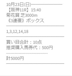 日曜日の無料情報で菊花賞の予想が出ていたのでご覧ください。