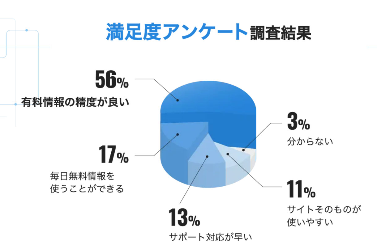 まずは無料情報が当たらなければ有料情報も使う気にはならないですし怪しい信憑性のないアンケート調査だなと思いました。