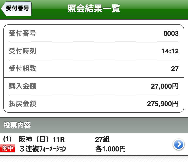 昼休み中に馬券買って、17時に仕事終わって的中してるか確認したらビックリ!! 会社にいるギャン中の同僚から進められて使ってみたけど同僚が紹介するだけの予想っぷりでした、普段ギャンブルは一切しないけどこんな一回で稼げるならのめり込んじゃいそうです。