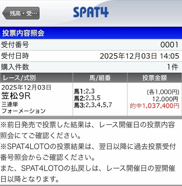 よくいって10万当たれば万々歳だったけど何十倍もの期待を超えてきた! いやはや、これは税金払わないと追われそうな額だけに、焦りを…(笑) 税金払う分また的中すりゃいい話だけか!