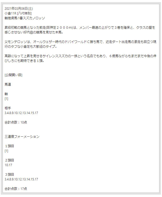 推奨馬1番コトブキテティスのことめっちゃ熱く語ってるけど掲示板も飾らず6着、しかも11頭立てで不的中とかやばすぎる。