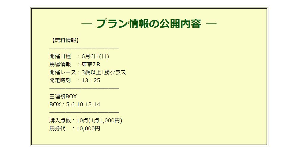 6/6(日)無料情報は堅かったけど1万8千円的中!