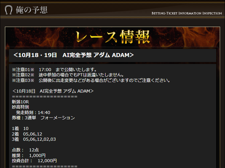 驚いたのは13日の無料予想です。