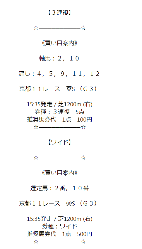 予想見にくいんだけど レース名一番上に書いといてほしい。 しかもモズメイメイ切ってるし 豊さんに謝れ(笑)