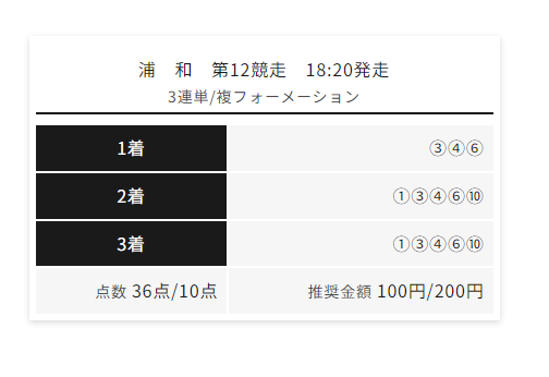 この予想で4-12-6で的中で130,050円と1-3-11で的中で184,260円のそれぞれ的中いただきました!