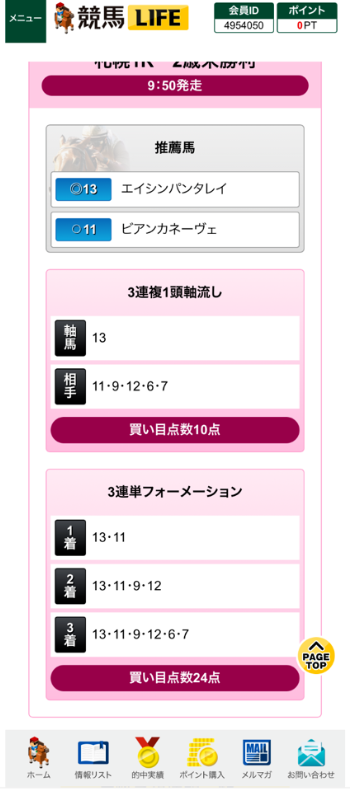 軸来ないから全然ダメです 当たらないですね~ここの無料予想は