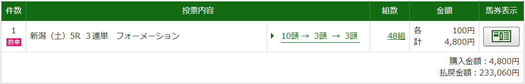 3連単、買い目点数48点って思うか、馬券代4800円と考えるか、僕は後者です。