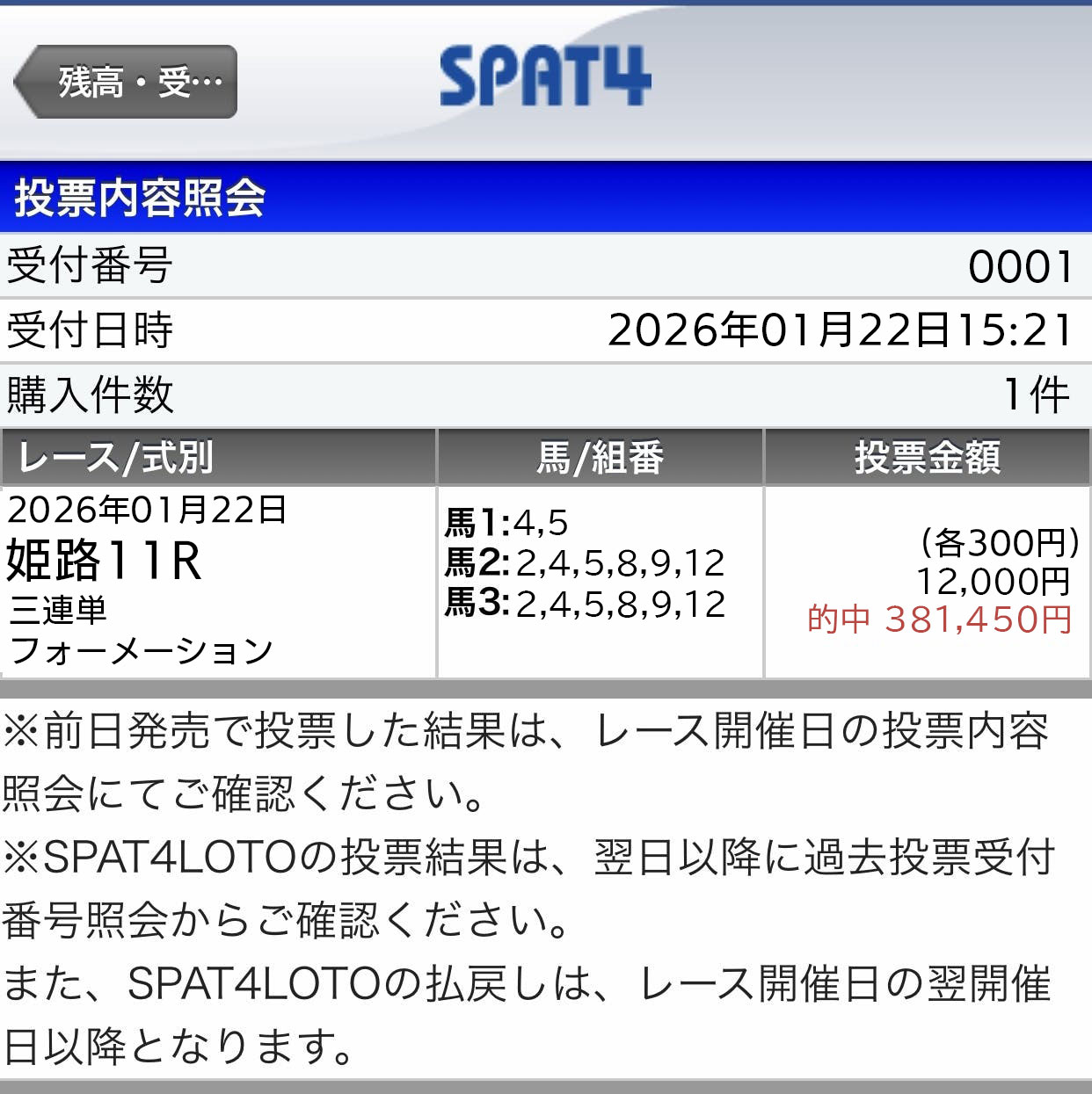 余談ですが3連単も同じ買い目で361.3倍的中