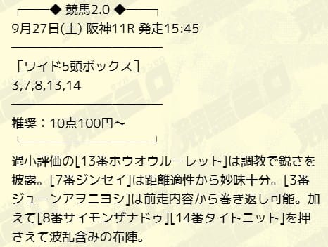 見解も付いてたのでワイドにプラスして3連複ボックスも購入。