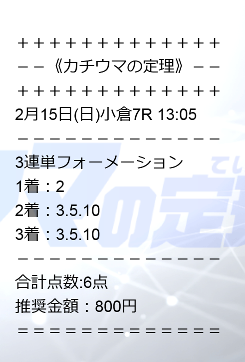 BOX買いで5万1800円的中貰えました。 重賞前に重賞資金集められて嬉しかったです。