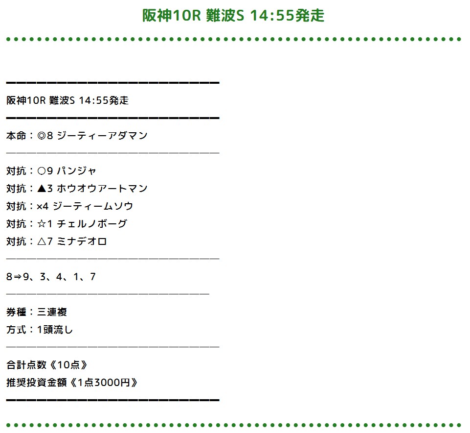 2026年3月29日。 無双1点の独占提供でマーチS的中。三連単1点で58万。一点参加した甲斐あり。