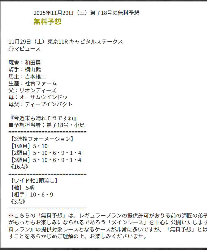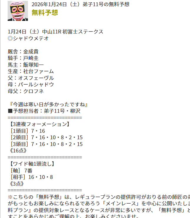 このレベルなら俺でも予想売れるw